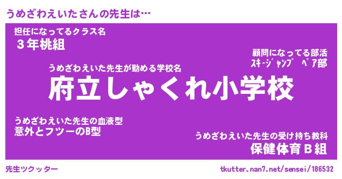 | 恥ずかしいあだ名 | 『プリティーうめざわえいた』『うめちん』 |