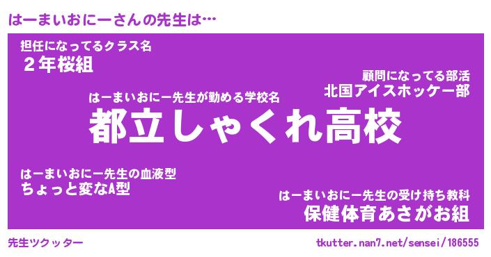 | 恥ずかしいあだ名 | 『プリティーはーまいおにー』『はーちん』 |