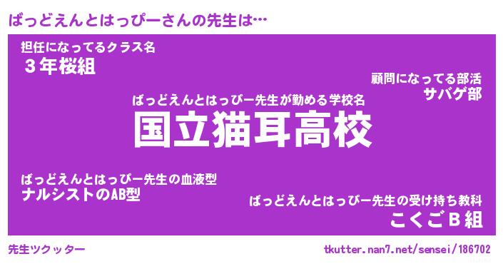 | 意味不明あだ名 | 『ペロリンばっどえんとはっぴー』 |