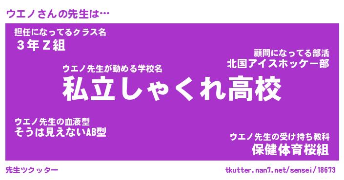 | ポケモン風あだ名 | 『ウエチュウ』『ウエノダネ』 |