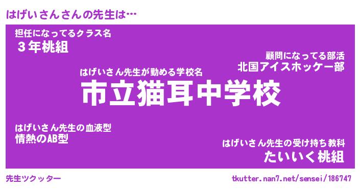 | ファンタジー風あだ名 | 『ハゲフェル』『エターナルハゲイサンー』 |