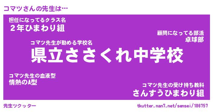 | 意味不明あだ名 | 『ペロリンコマツ』『コマツフォーエバー』 |