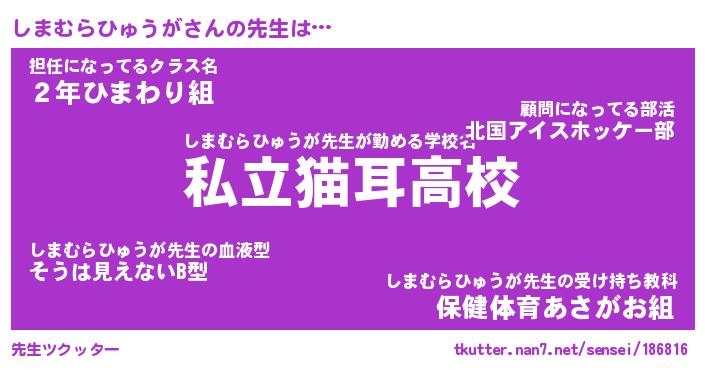 | ヘコむあだ名 | 『しまにー』『なまこ酢』『しまっ子』 |