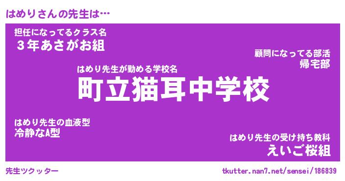 | 意味不明あだ名 | 『ペロリンはめり』『はめりフォーエバー』 |