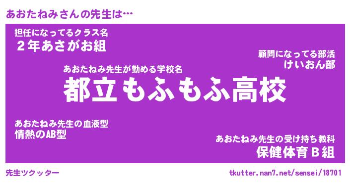 | ファンタジー風あだ名 | 『アオフェル』『エターナルアオタネミー』 |