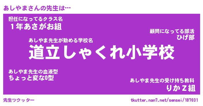 | ファンタジー風あだ名 | 『アシフェル』『エターナルアシヤマー』 |
