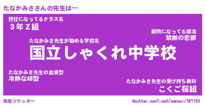 | ファンタジー風あだ名 | 『タナフェル』『エターナルタナカミサー』 |