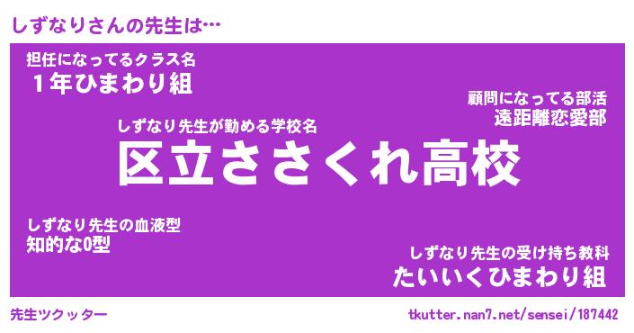 | ヘコむあだ名 | 『しずもー』『つくし』『しずっぺ』 |