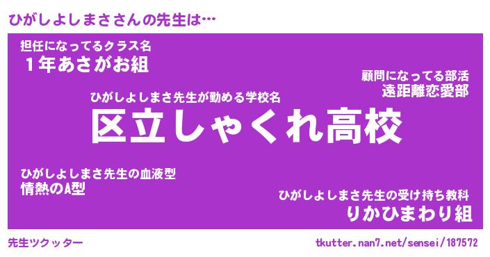 | 女子向けラノベタイトル風あだ名 | 『誰かこのひがしよしまさを説明してください! ~契約から始まるウェディング~』 |