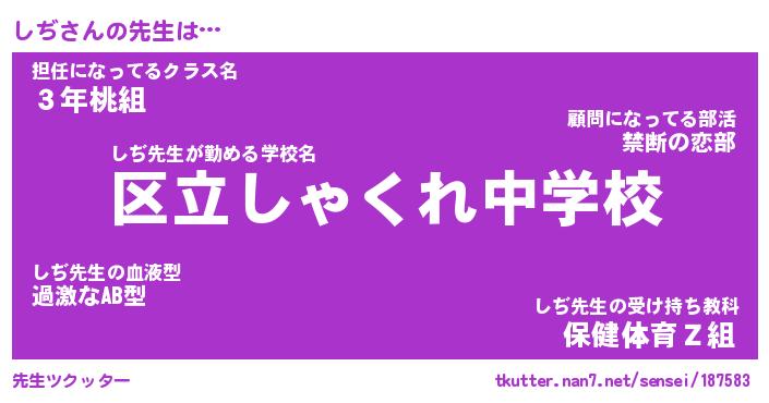 | 伝説のあだ名 | 『封印されしスナイパーしぢ』 |
