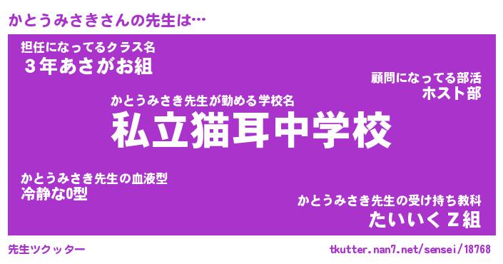 | ヒーロー風カッコイイあだ名 | 『スーパーカトウミサキ』『天弓騎士カト』 |