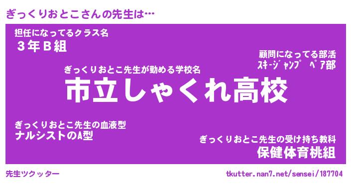 | 伝説のあだ名 | 『伝説のスナイパーぎっくりおとこ』 |