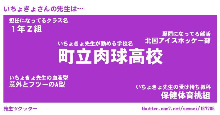| ファンタジー風あだ名 | 『イチフェル』『エターナルイチョキョー』 |