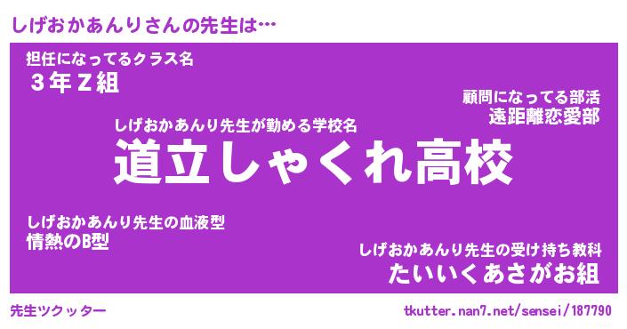 | 女子向けラノベタイトル風あだ名 | 『しげおかあんり姫と円卓の騎士』 |