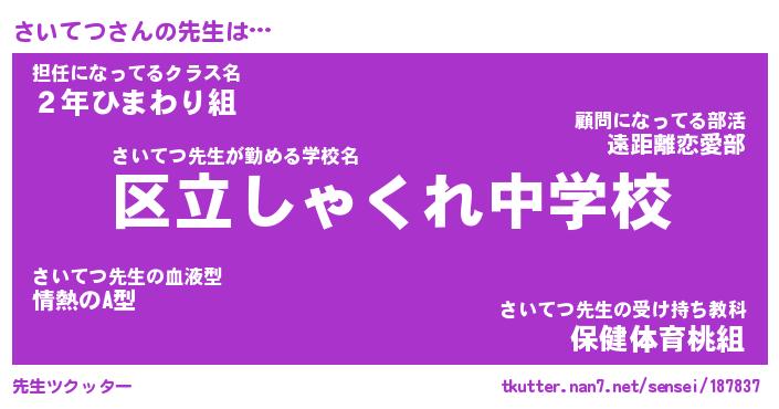 | 意味不明あだ名 | 『ペロリンさいてつ』『永久保存さいてつ』 |