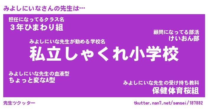 | ヘコむあだ名 | 『みよっふぃ~』『つくし』 |