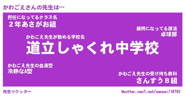 | ヒーロー風カッコイイあだ名 | 『スーパーカワゴエ』『魔戒騎士カワ』 |