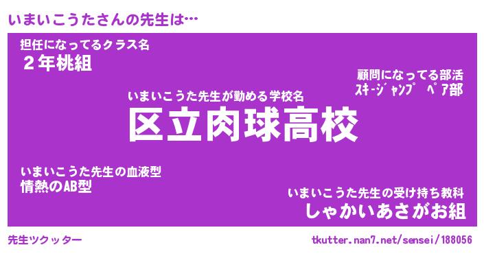 | ヒーロー風カッコイイあだ名 | 『スーパーイマイコウタ』『魔戒騎士イマ』 |