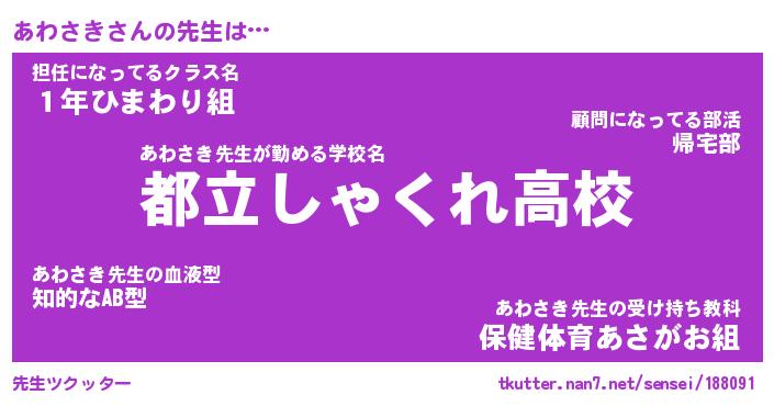 | ヒーロー風カッコイイあだ名 | 『スーパーアワサキ』『天弓騎士アワ』 |