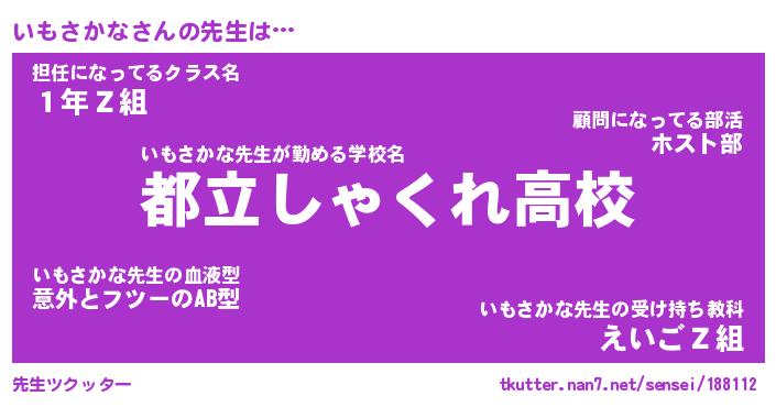 | ファンタジー風あだ名 | 『イモフェル』『エターナルイモサカナー』 |