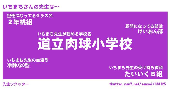 | 意味不明あだ名 | 『ペロリンいちまち』『永久保存いちまち』 |