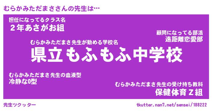 | 胡散臭い通販商品みたいなあだ名 | 『モテモテ間違いなし水晶球…その名も「むらかみただまさ」』 |