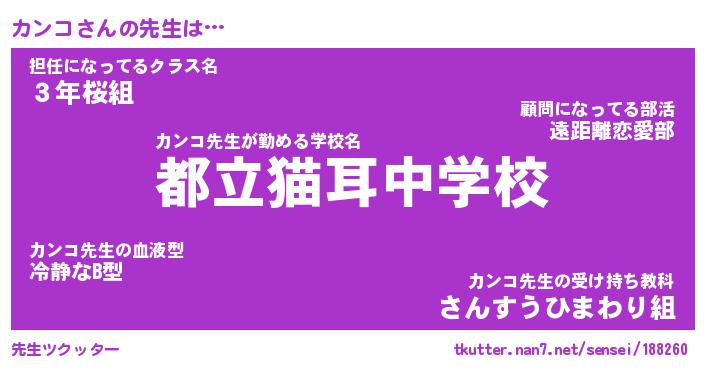 | ヒーロー風カッコイイあだ名 | 『スーパーカンコ』『ウルトラカンコマン』 |