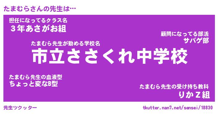 | ヒーロー風カッコイイあだ名 | 『スーパータマムラ』『暗黒騎士タマ』 |