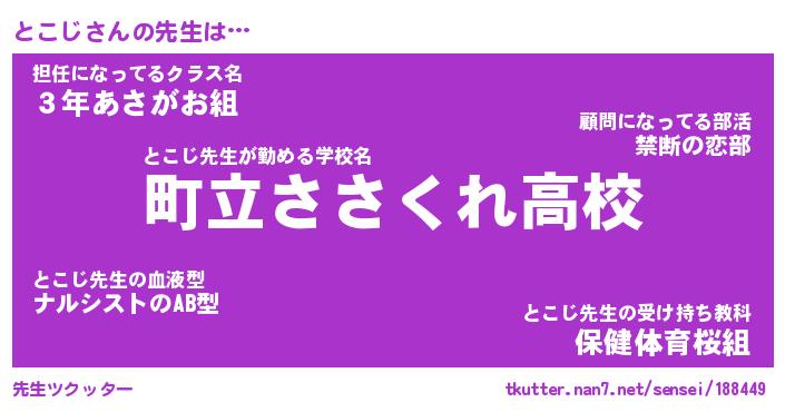 | ファンタジー風あだ名 | 『トコフェル』『エターナルトコジー』 |