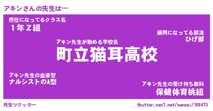 | 意味不明あだ名 | 『ペロリンアキン』『アキンフォーエバー』 |
