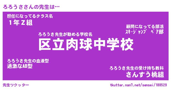 | 意味不明あだ名 | 『ペロリンろろうさ』『永久保存ろろうさ』 |