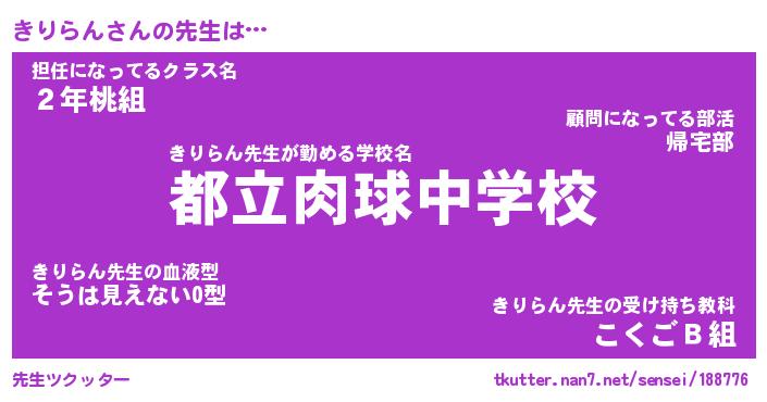 | 意味不明あだ名 | 『ペロリンきりらん』『永久保存きりらん』 |
