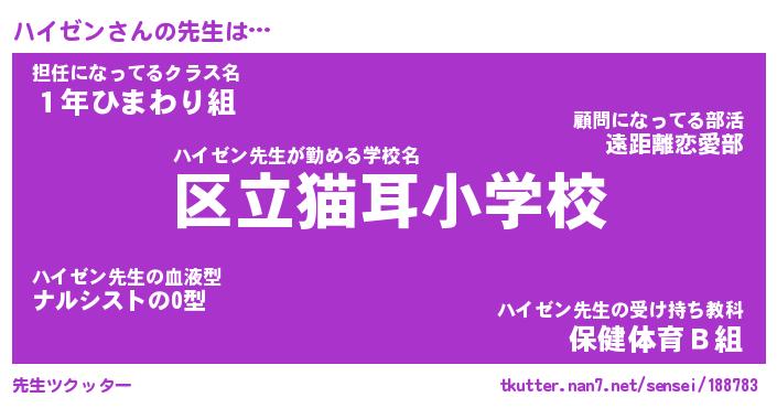 | 意味不明あだ名 | 『ペロリンハイゼン』『永久保存ハイゼン』 |