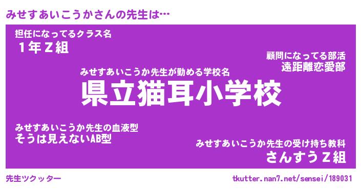 | ヘコむあだ名 | 『みせにー』『つくし』『みせを』 |