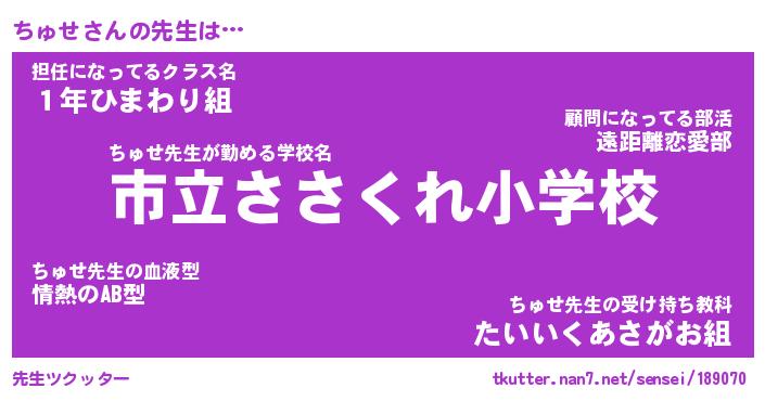 | ヒーロー風カッコイイあだ名 | 『スーパーチュセ』『ウルトラちゅせマン』 |