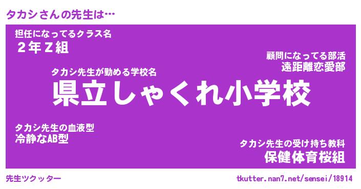 | 意味不明あだ名 | 『ペロリンタカシ』『タカシフォーエバー』 |