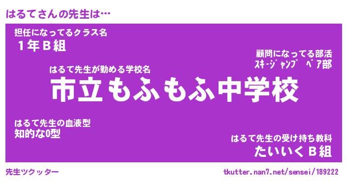 | 意味不明あだ名 | 『ペロリンはるて』『はるてフォーエバー』 |