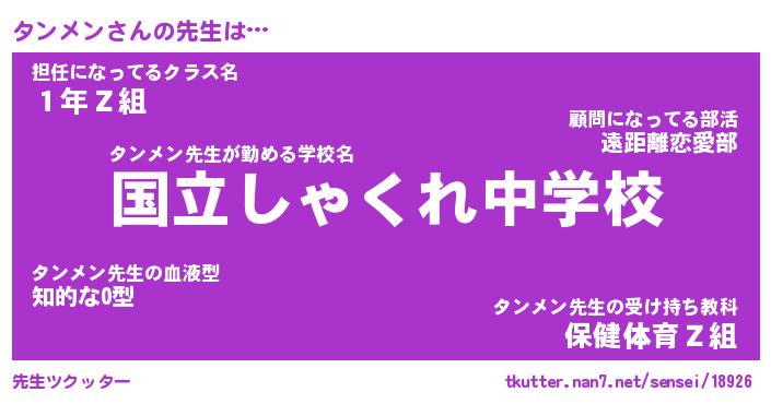 | 伝説のあだ名 | 『伝説のスナイパータンメン』 |