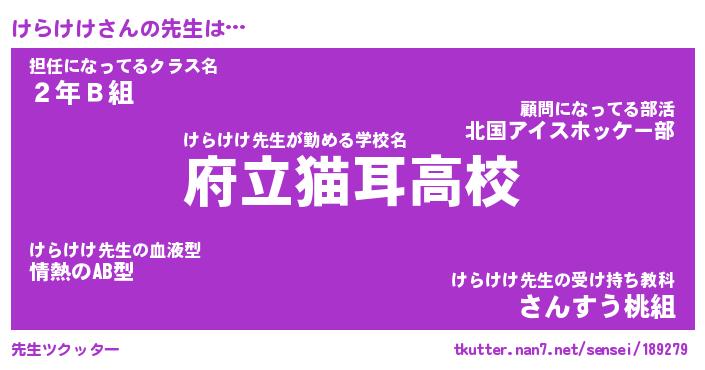 | ヘコむあだ名 | 『けらにー』『豆乳』『けらっちょ』 |