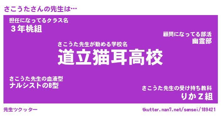 | 意味不明あだ名 | 『ペロリンさこうた』『永久保存さこうた』 |