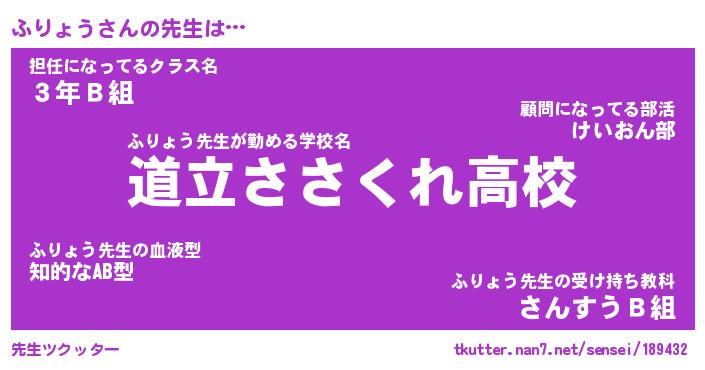 | 意味不明あだ名 | 『ペロリンふりょう』『永久保存ふりょう』 |