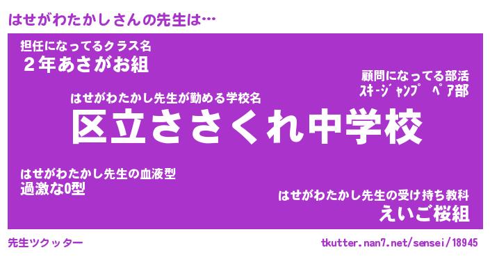 | ポケモン風あだ名 | 『ハセチュウ』『ハセガダネ』 |