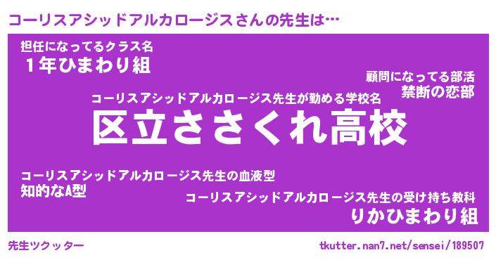 | ヒーロー風カッコイイあだ名 | 『スーパーコーリスアシッドアルカロージス』 |