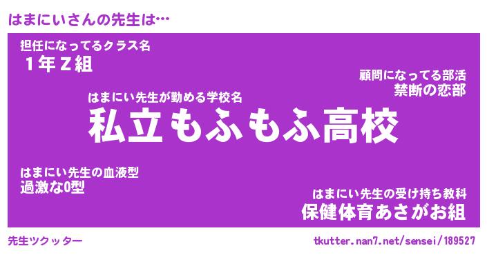 | 意味不明あだ名 | 『ペロリンはまにい』『永久保存はまにい』 |