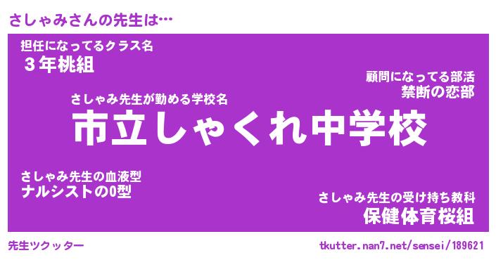 | 意味不明あだ名 | 『ペロリンさしゃみ』『永久保存さしゃみ』 |