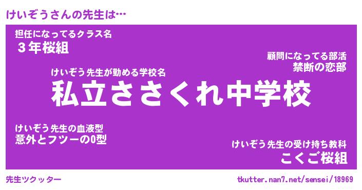 | 意味不明あだ名 | 『ペロリンけいぞう』『永久保存けいぞう』 |