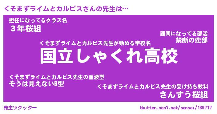 | 伝説のあだ名 | 『伝説のスナイパーくそまずライムとカルビス』 |