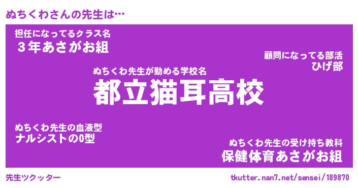 | ポケモン風あだ名 | 『ヌチチュウ』『ヌチクダネ』 |