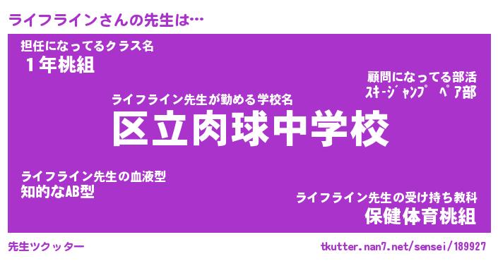 | 肩書あだ名 | 『ライフラインCEO』『ライフライン先生』 |