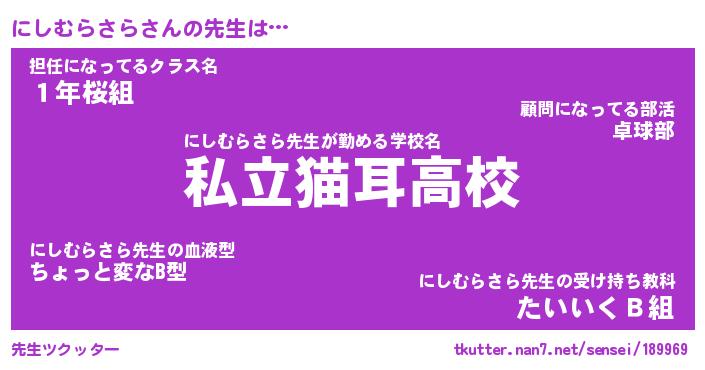 | ヒーロー風カッコイイあだ名 | 『スーパーニシムラサラ』『黄金騎士ニシ』 |